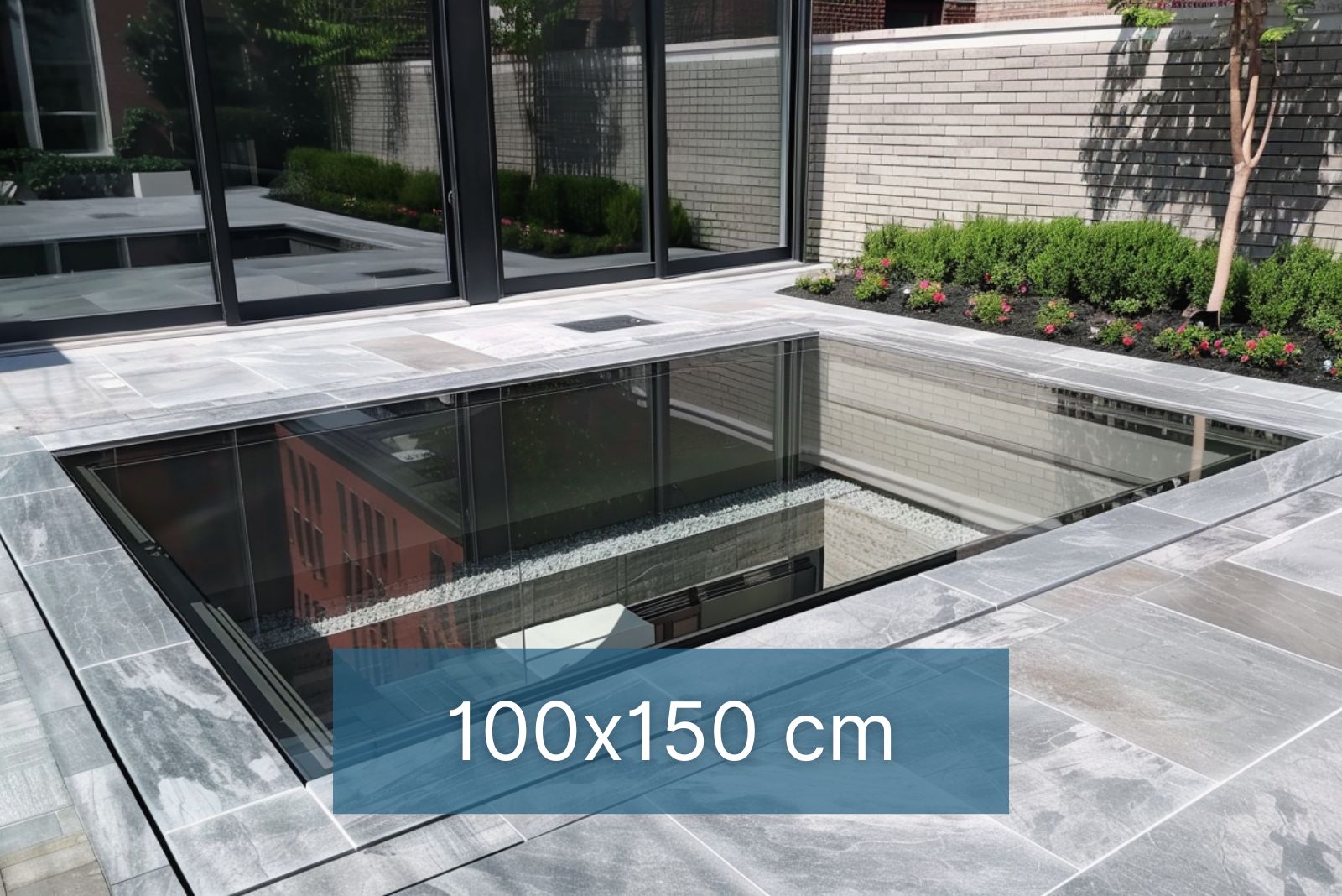Le fait que nos lanterneaux Vitre de Sol soient sans cadre donne à nos clients le choix d’utiliser et d’appliquer ce produit à n’importe quel aspect et design, leur donne la possibilité de les combiner avec les matériaux de leur choix – terrasse, asphalte, béton, etc. et d’obtenir un look contemporain et moderne.